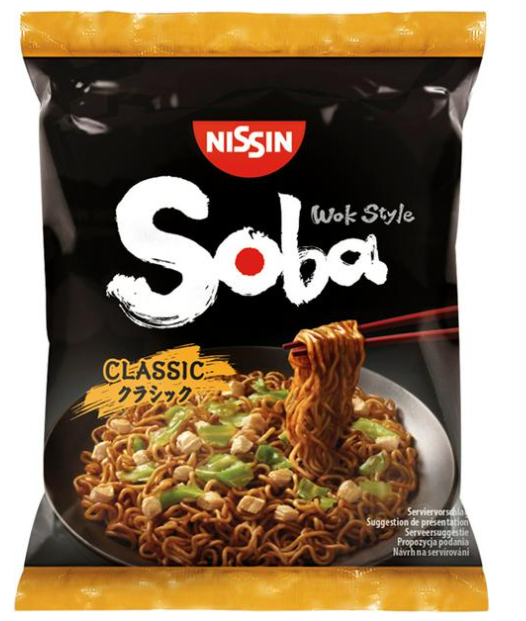 Nissin Soba Нудли Класик 109 г са бързи за приготвяне и вкусни нудли с класически аромат, подходящи за бързо хранене у дома или на работа.