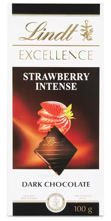 Lindt Excellence Ягода – тъмен шоколад с плодов акцент и сушени ягоди. Изтънчен вкус в 100 г удоволствие.