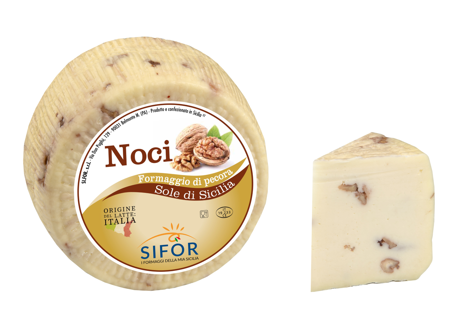 Готово овче сирене с орехи Sifor – 100% овче мляко от Сицилия и орехи.